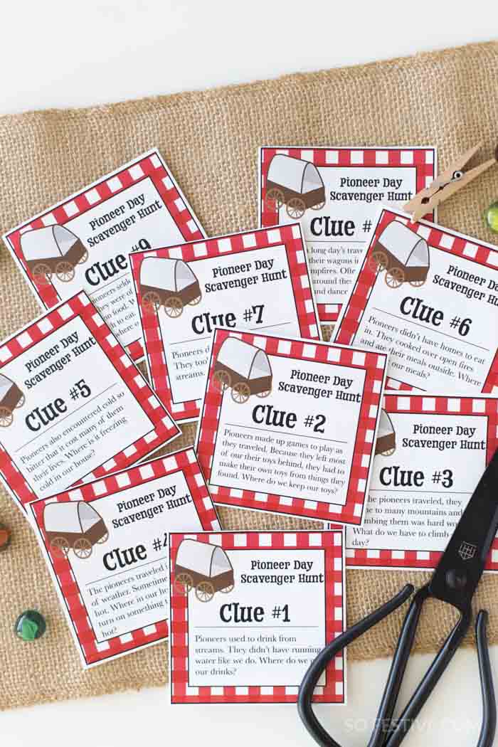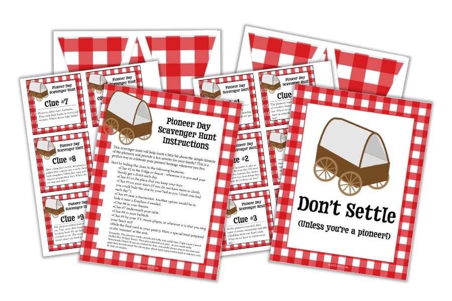 Pioneer Day Celebration Kit Banner, Treasure Hunt Clues & Party